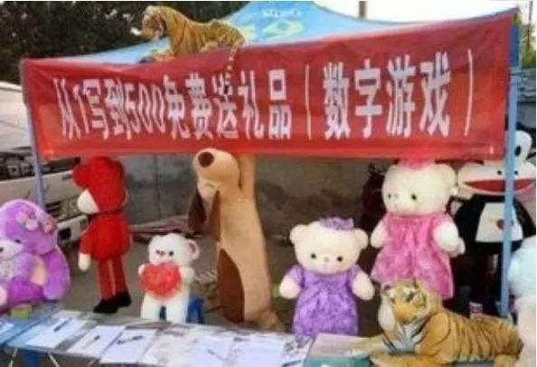 在古镇中逛吃的小编,不经意碰到了一个“伤害性不强,但侮辱性极大”的生意招牌:“成功默写1到500,免费送娃娃”。