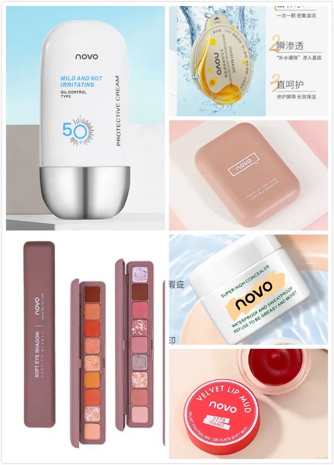 novo品牌隶属于广州爱莉化妆品有限公司旗下,作为近年来趁国潮爆发而崛起的新锐美妆,novo主打极致性价比。
