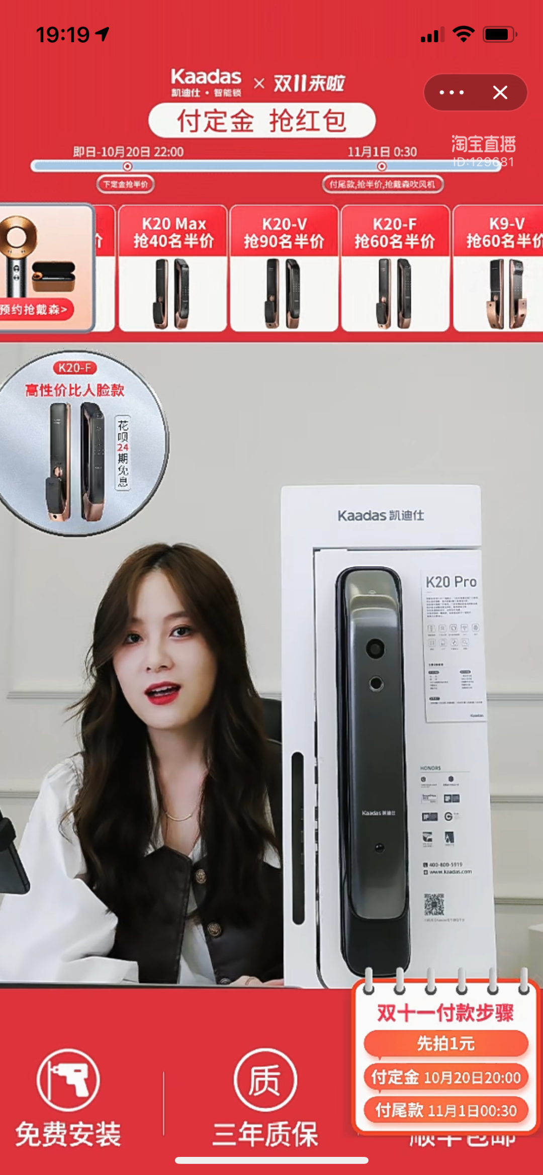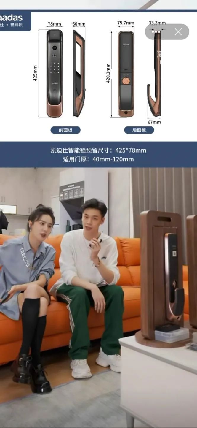 9月4日,凯迪仕指纹锁参加了薇娅直播间的家装节活动,直播间售价2099元。助播对指纹、密码、APP远程密码等多种开锁方式,以及摄像、语音、报警等功能进行演示,全方位介绍产品功能特点。
