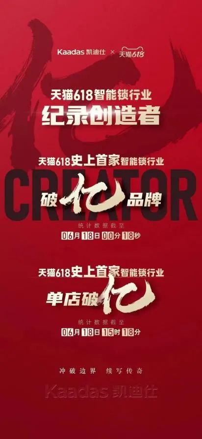2021年年中大促618期间,凯迪仕成智能锁行业的最大赢家。它不仅是天猫618历史上第一家智能锁行业破亿品牌、天猫618史上首家单店破亿品牌、智能锁行业天猫618双纪录创造者,更是连霸10个榜单第一。
