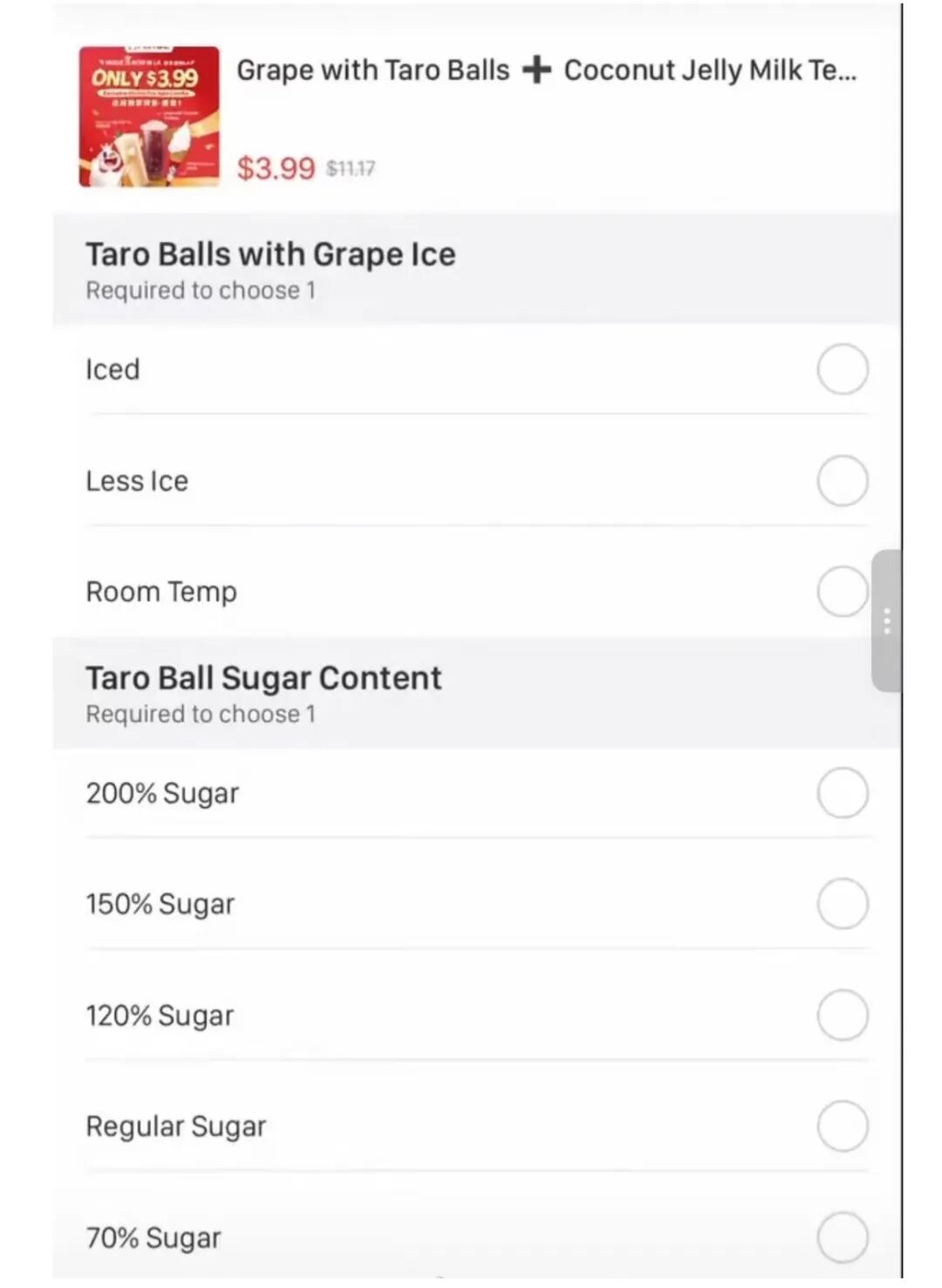 蜜雪冰城美国店的糖度选择