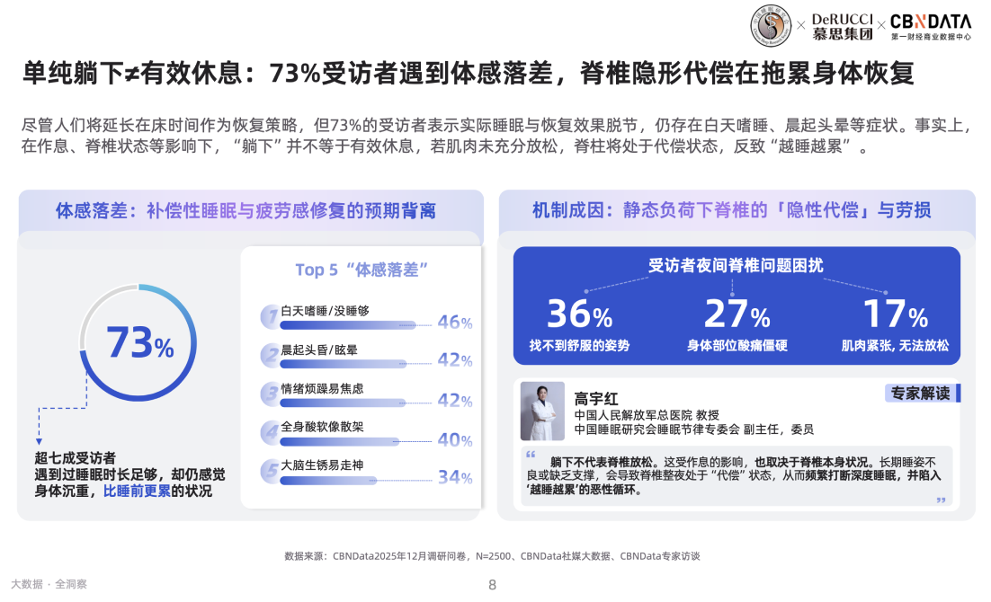 在此背景下,慕思集团联合中国睡眠研究会、第一财经商业数据中心(CBNData)共同发布《2026脊椎健康与睡眠白皮书》,对国人脊椎健康状态进行了一次全维度扫描,并提出“睡眠3.0时代”这一核心命题,以科学的视角,去重构脊椎健康与深度睡眠的共生关系。