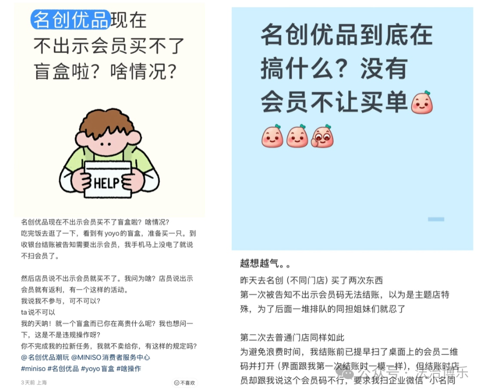 终端消费体验,仍是零售企业最核心的基本盘。但有部分消费者近日在社交平台上反馈,在名创优品门店消费时,被店员要求必须注册会员才能完成结账。还有消费者反映,哪怕是购买洗脸巾等日常非潮玩品类,也被要求必须注册会员,甚至要额外添加企业微信才能完成交易。