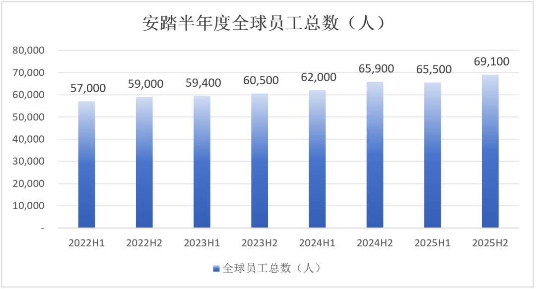 与研发比率的稳定相比,安踏2025年的员工成本比率从2024年的14.8%提升至15.3%,这背后是其全球化扩张,以高质量服务支撑DTC(直面消费者)的战略前置。我们拆分一下员工成本比率上升主要有两点原因: