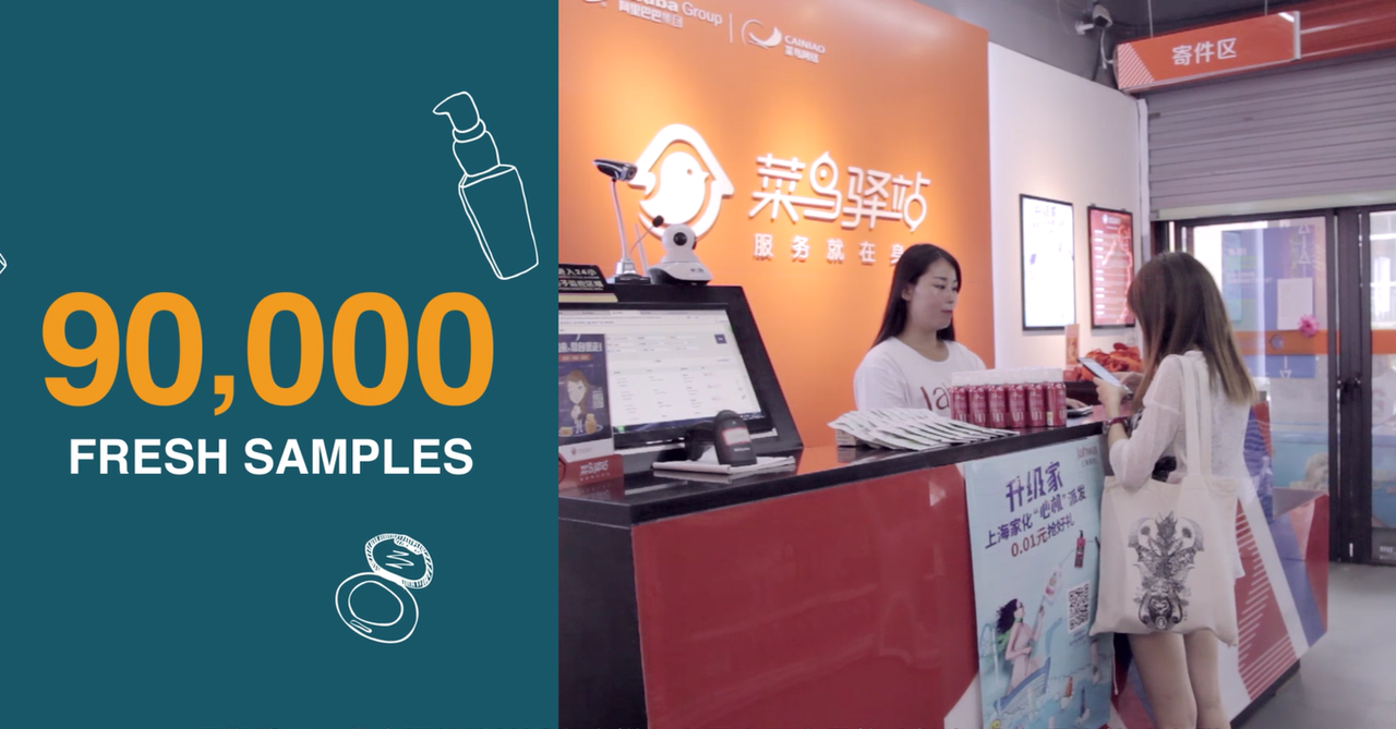 在为上海家化策划的“捕鱼活动”中,宝尊和菜鸟物流合作。在300多家菜鸟驿站中,消费者只要花1分钱,就可以领取爆款小样。在九万多个小样的“引诱”下,大批潜在消费者被引导进淘宝平台内的“渔场”。