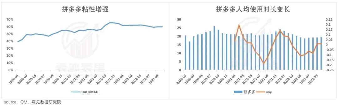 如此精心算计收割下,可以看到,拼多多的用户粘性及用户时长,持续提升。