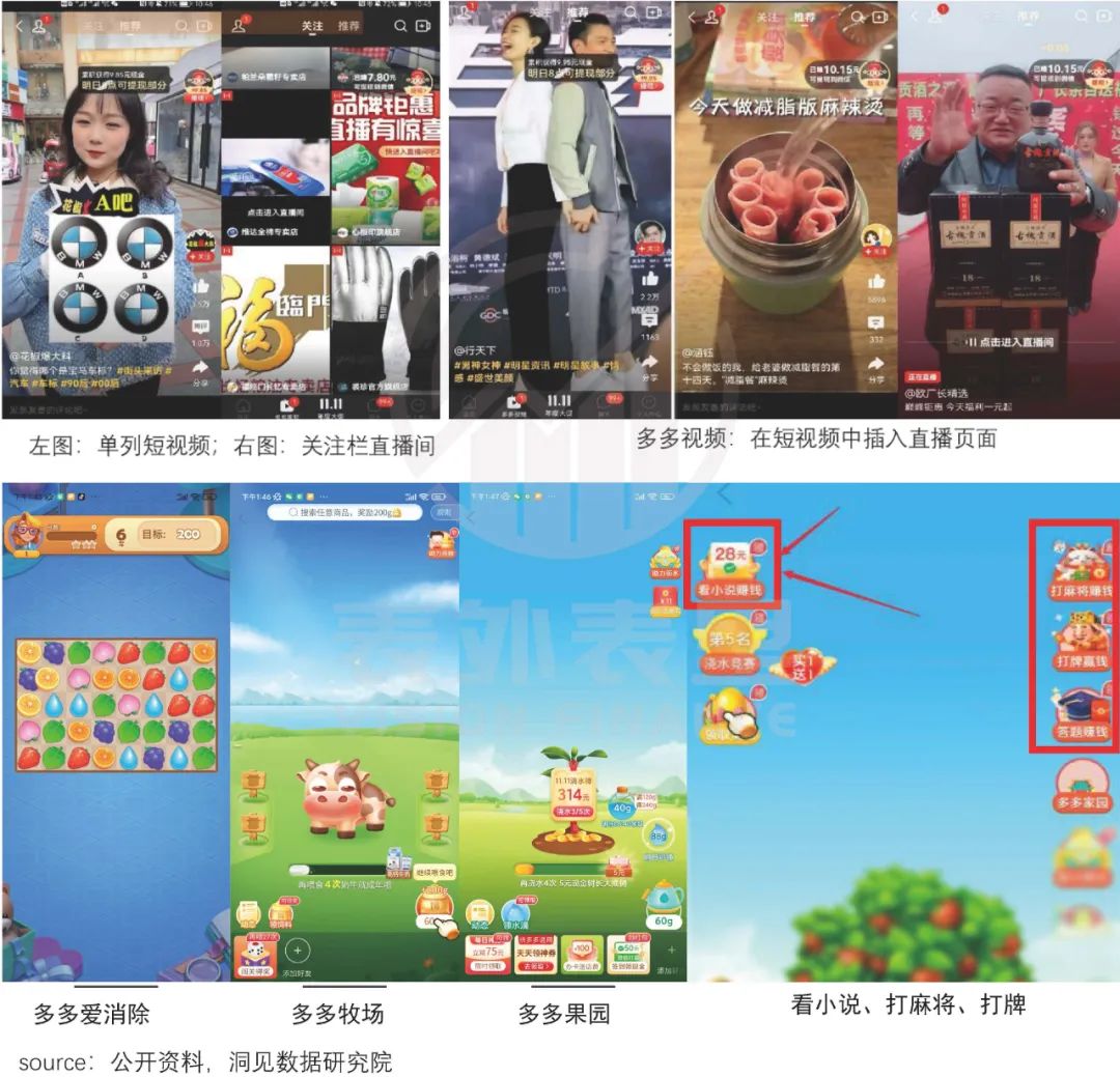 拼多多进一步将商家直播,整合进升级为一级入口的多多视频里,且加载率不断提高;此外,主站还新引进了种树盖楼、打麻将、消消乐等多种休闲游戏,甚至可以看小说。