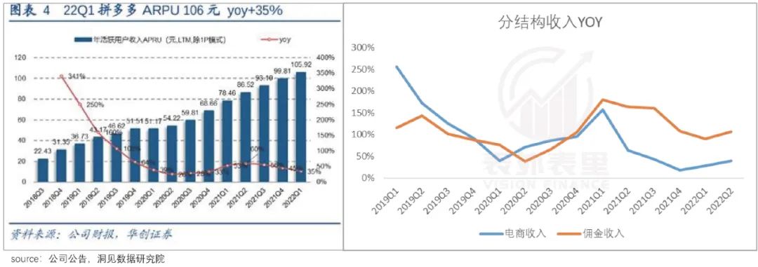 且虽然是低价去库存,但这些品类相比原先主打的生鲜百货,属于高加价、高溢利,不仅推动了拼多多ARPU的增长,也带动佣金收入大幅提升。