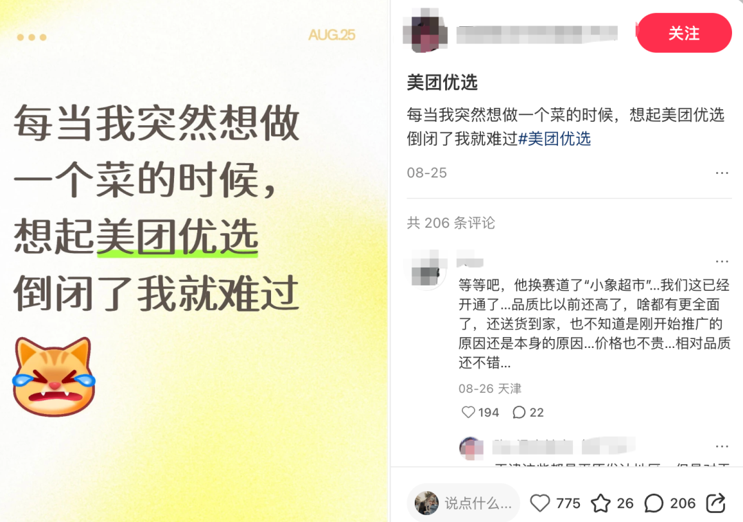 今年6月,美团刚刚收缩了社区团购业务——美团优选,彼时就引发了不少老用户感慨,“美团优选质量要比同行好多了,关停确实可惜。”