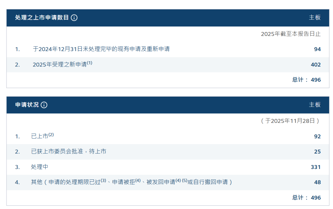 近年来,随着港股资本市场制度红利释放,吸引了众多上市者,这也导致其处理IPO的数量显著增加。据港交所官网显示,2025年受理的新递交上市申请达402起,已上市及待上市仅117起,还有331起申请仍处于“处理中”的状态。