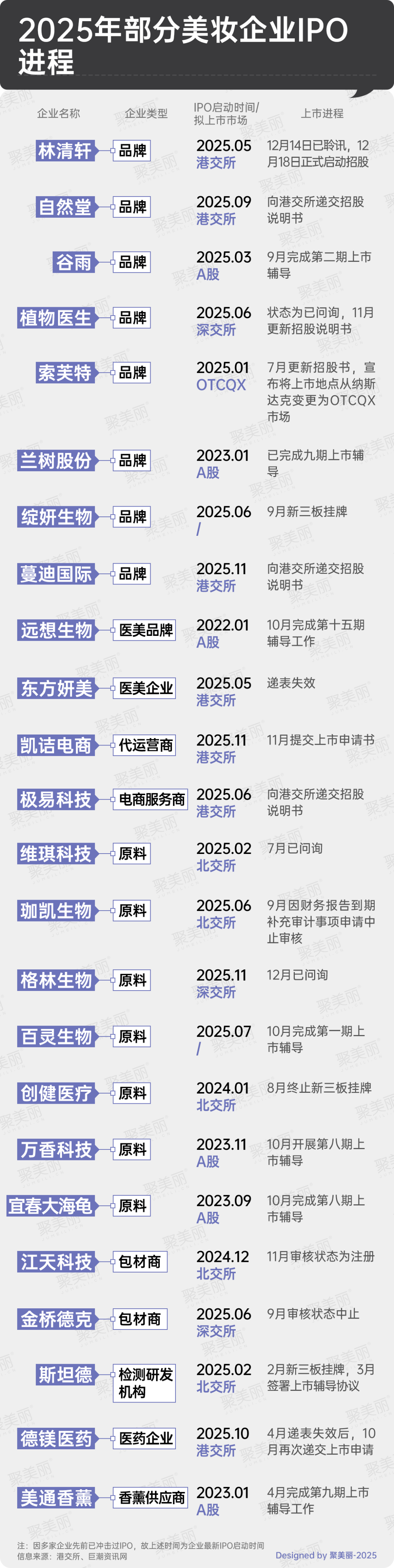 随着2025年年终收官之际临近,美妆企业不仅面临全年业绩的最终检验,其在资本市场的上市进程也备受关注。