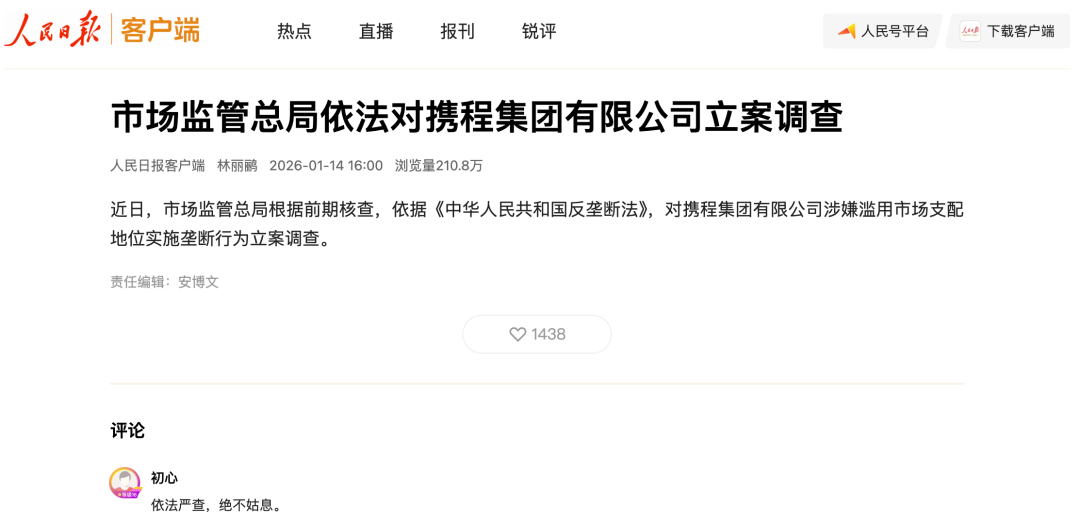 此次立案调查,标志着这场积怨已久的矛盾,终于从市场反馈进入法制化监管。而携程真正的考验或许才刚刚开始,在监管的审视与生态的信任危机下,它必须回答一个根本问题,是继续依赖龙头地位维持高额利润,还是彻底重构与用户、商家之间的契约,走向一个更透明、更公平、更可持续的未来?
