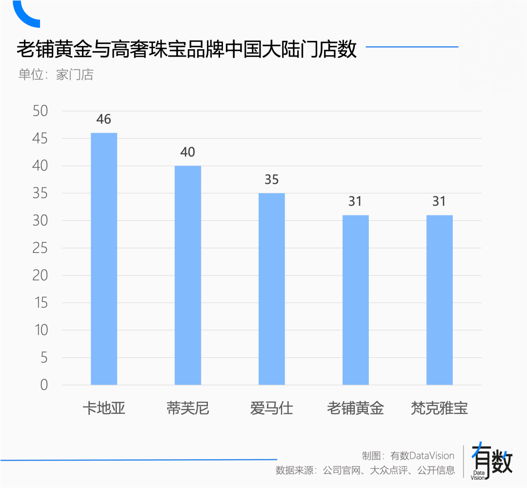 按照汇丰的测算,老铺黄金单店销售额大概是卡地亚的2倍,梵克雅宝的3倍;按照中信的口径,老铺黄金的店效也超过了卡地亚和Tiffany。