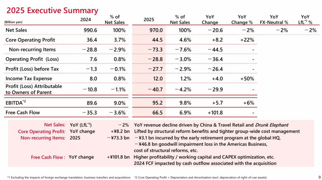 今日(2月10日),资生堂集团发布了2025及Q4及全年财报。