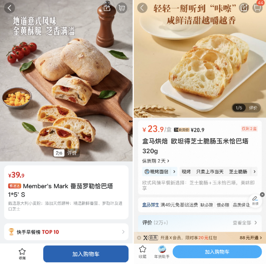 山姆、盒马的恰巴塔商品均在热销