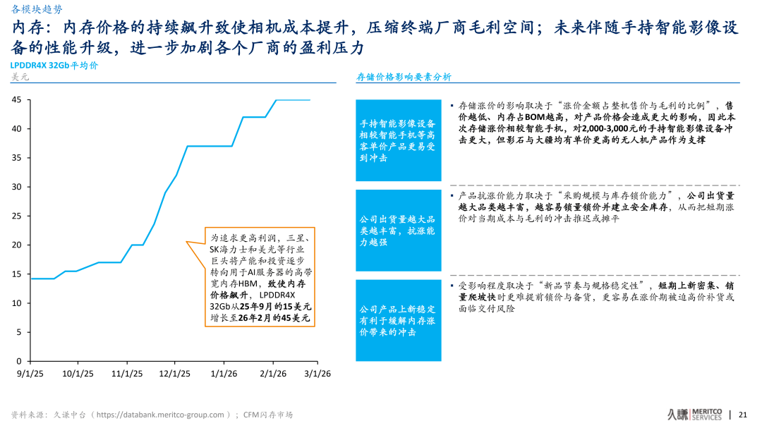 久谦在分析中提到,大疆在CMOS、镜头等关键部件上采用定制方案,正是建立在持续投入和较大出货量基础之上。对于存储等标准器件,大疆同样可以受益于整体规模,获得相对更有利的采购条件,从而对冲部分涨价风险。