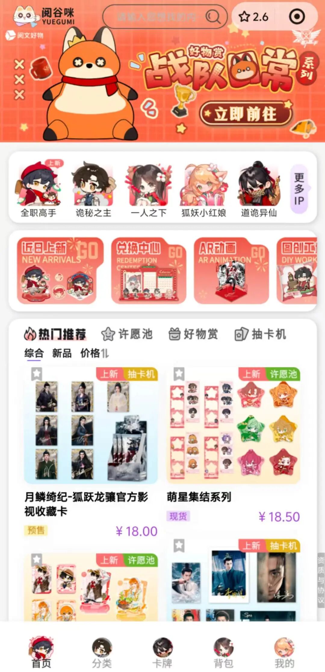 阅文凭借IP优势构建核心壁垒。阅文于2024年末推出“阅谷咪”小程序后,目前正推进独立App开发,“阅谷咪”依托《全职高手》《一人之下》《狐妖小红娘》等热门网文IP,打造从内容创作到衍生品变现的闭环,覆盖徽章、立牌、色纸、卡牌等全品类,接着通过“IP内容”到“粉丝社群 ”,再到“谷子消费”的模式,实现订单转化。现已成为阅文“谷子”业务的一个重要收入入口。