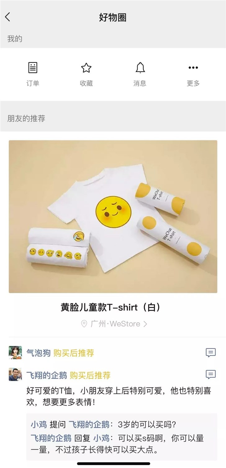微信公开课3月28日发文称,微信正式开放好物推荐接口。用户从微信进入发现-小程序,轻触搜索框,就可进入“好物圈”。3月初微信正式公测“好物圈”功能,这是微信推出的基于社交关系的好物推荐“圈子”,供用户分享喜欢的商品、书籍影音、景点等。用户可以在这里浏览朋友推荐的物品,并与朋友进行互动、交流心得。用户授权小程序同步数据后,可以在这里查看小程序里的订单和收藏,还可以将自己购买或收藏过的好物推荐给朋友。