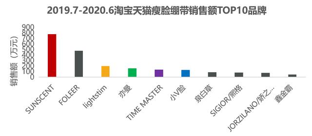 SUNSCENT、FOLEER、lightstim瘦脸绷带销售额位居前三。