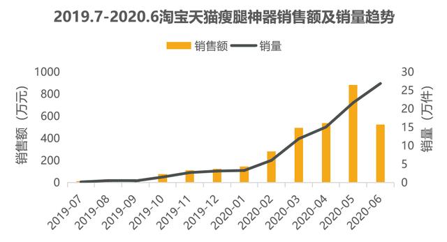 瘦腿神器在2019年就已经上线,直到2020年才开始全面爆发。2020年第二季度销售额达到1710万元,同比增长了45倍。