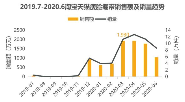 瘦脸绷带相比仪器性价比更高,2020年第二季度瘦脸绷带在淘宝天猫的销售额已经达到1350.9万元,与去年同期相比翻了12倍。