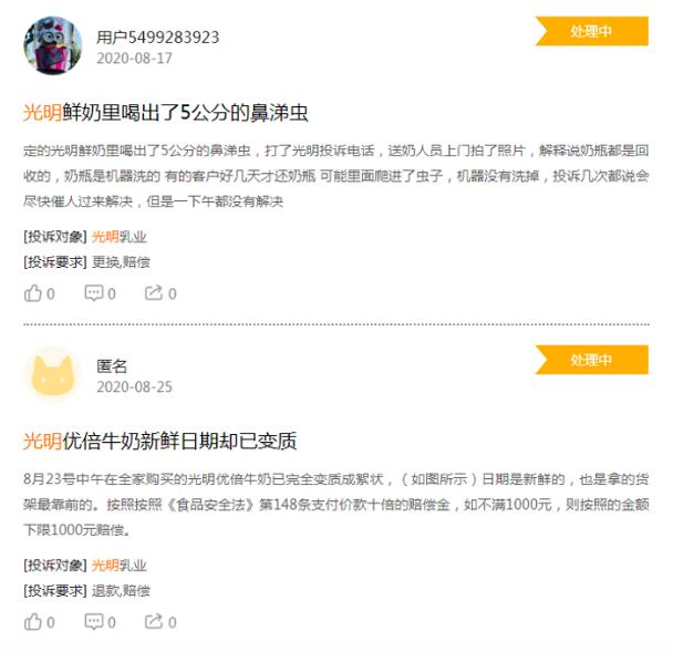 从2005年,郑州光明山盟“早产奶”事件遭到全国线下、线上媒体报道,到2012年因质量问题在人民日报刊登向消费者的致歉文,再到现在各个投诉网站上依旧能见到光明的质量问题投诉。